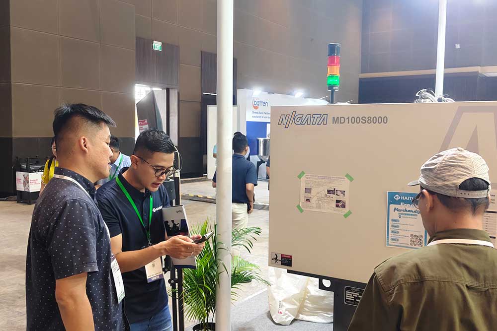In addition, Haitian Precision’s V8 CNC machining center — a top-selling model in Southeast Asia — fully meets customer needs in mold repair and machining. As the only machining center on display across the entire venue, it drew considerable attention from visitors, showcasing Haitian Machinery’s ability to provide customers with comprehensive “from production to factory maintenance” solutions.