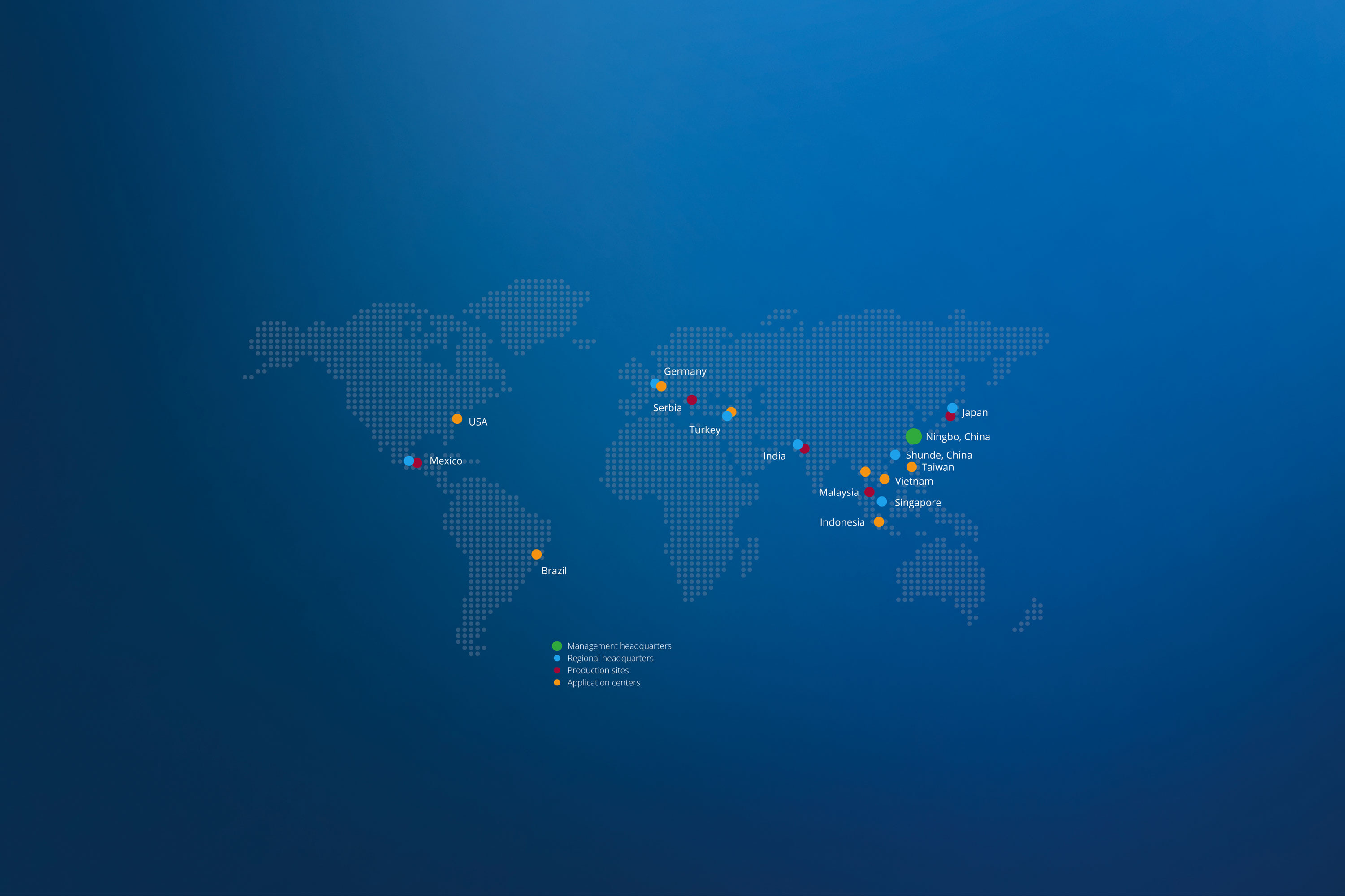 We operate in all major global markets, with regional headquarters and assembly sites worldwide, including our main hubs in China (Ningbo & Shunde). With our strong network plus 80+ sales and service partners in over 130 countries, we deliver fast, efficient, and customized turnkey solutions tailored to the specific needs of local markets.